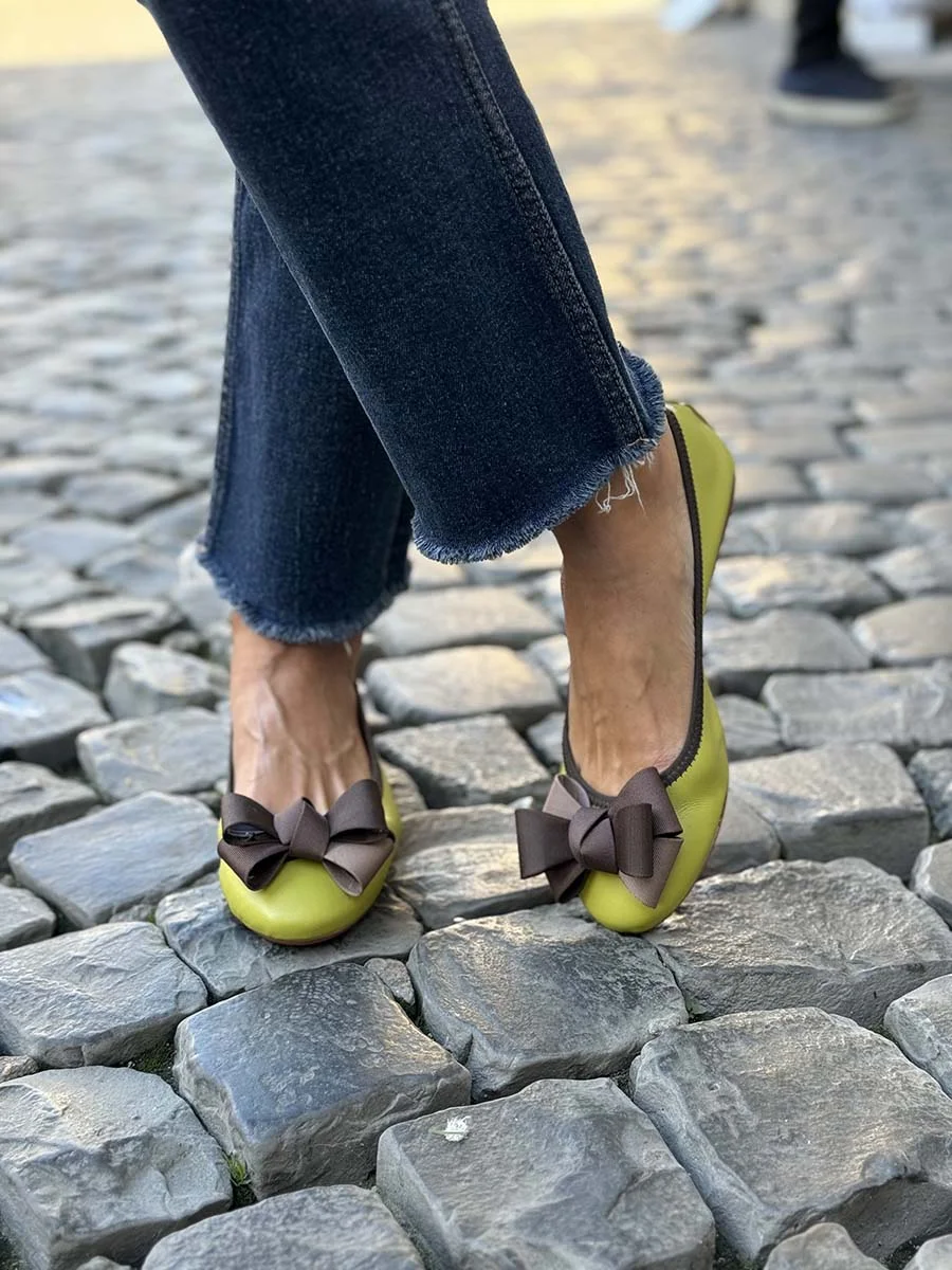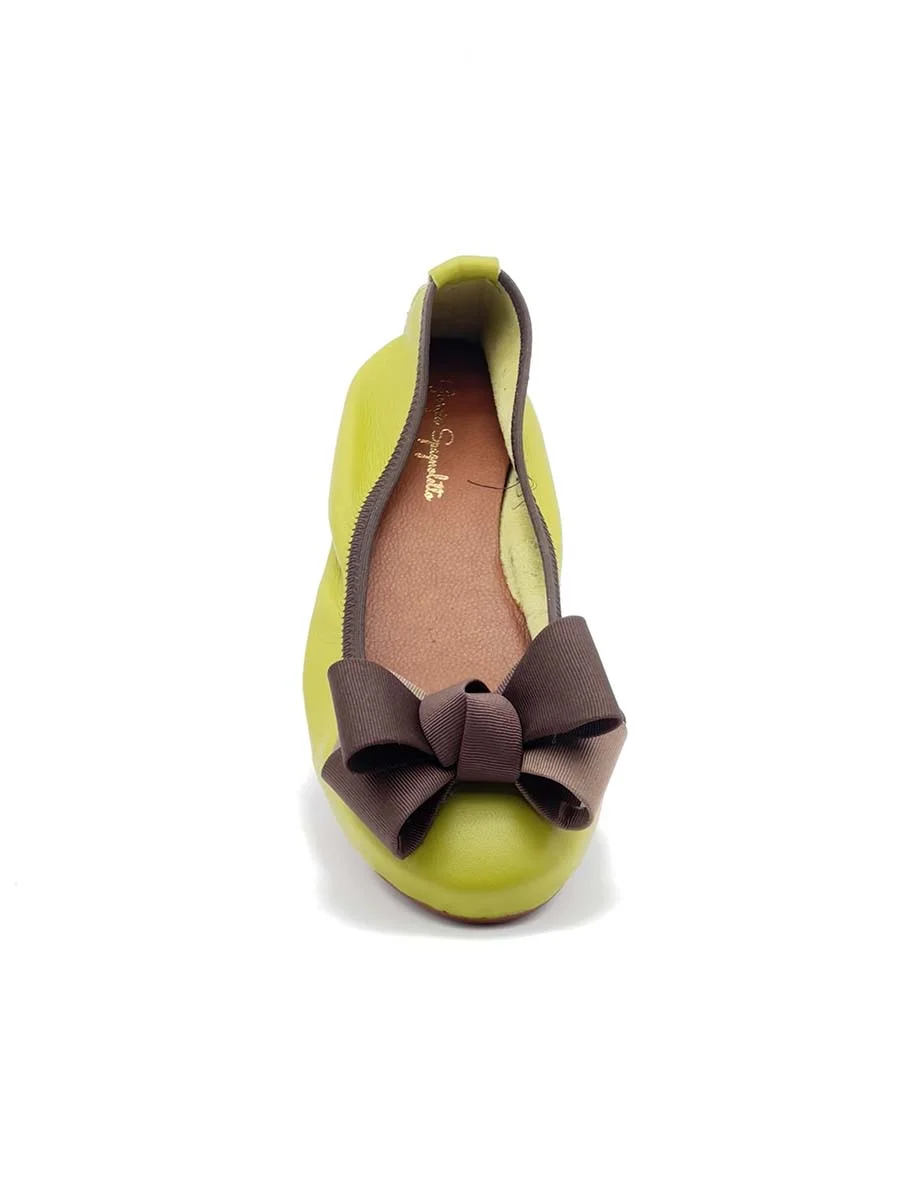 Si chiama “Alice” la nostra ballerina con rialzo interno anti tallonite di 1,5 cm. Realizzata in morbida nappa asparago con fiocco in gros grain multicolor. Il fondo è in gomma. Si consiglia una taglia in più.