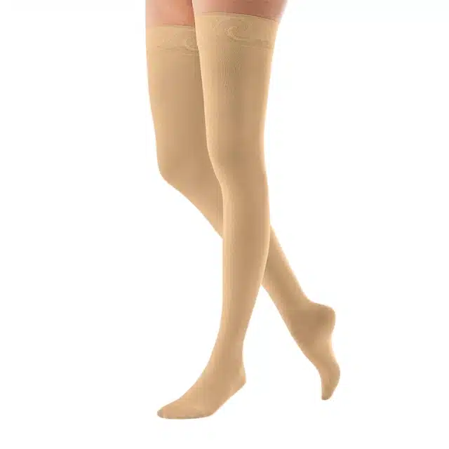 L’autoreggente VenoTrain micro K1 combina stile e funzione offrendo un supporto delicato ma efficace per gambe affaticate o con i primi segni di insufficienza venosa. La compressione graduata di classe 1 stimola la circolazione sanguigna, riducendo gonfiore, pesantezza e comparsa di capillari visibili.