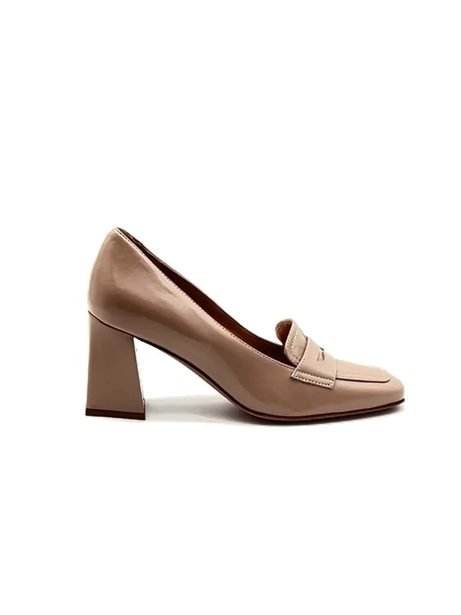 Si chiama “Benedetta” il nuovo decollete di questa stagione. Dalla forma a mandorla realizzato in morbida vernice nude, con lavorazione a sacchetto che consente alla scarpa oltre che la leggerezza la massima flessibilità. Tacco scolpito cm 7, il fondo è in cuoio.