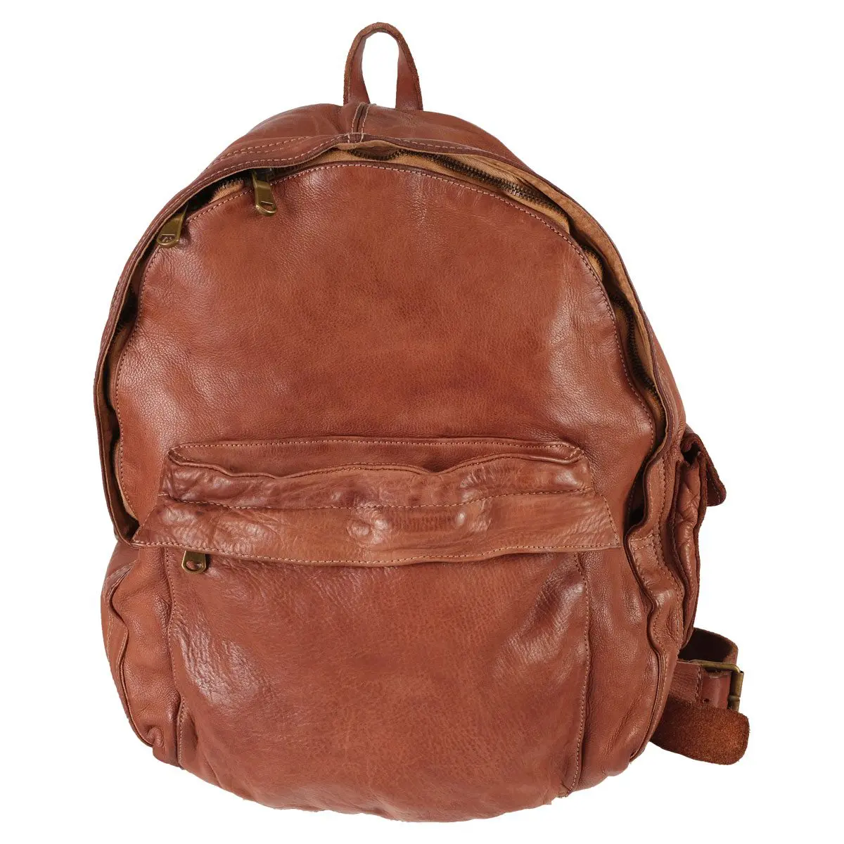 Zaino artigianale in pelle bovina conciata al vegetale.