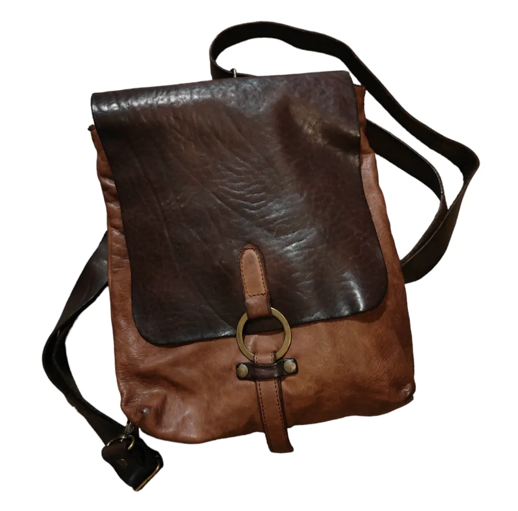 Zaino in cuoio unisex, artigianale monotasca in pelle bovina conciata al vegetale.