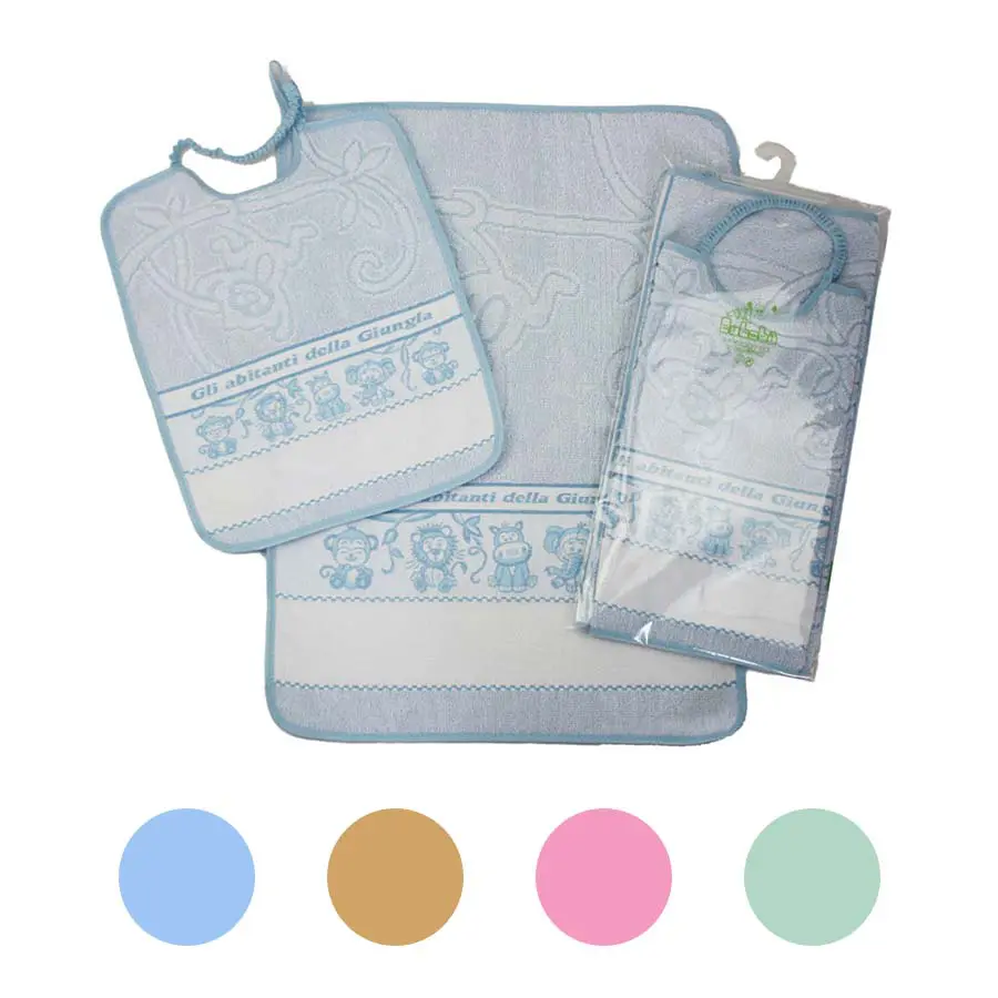 Il Completo Biberon è un comodissimo completo per affrontare al meglio l’inizio dell’asilo. Il set è interamente in cotone e completamente lavabile. È composto da una bavaglia con elastico della misura di 28×32 cm ed infine da una salvietta asciugamano della misura di 40×55 cm.