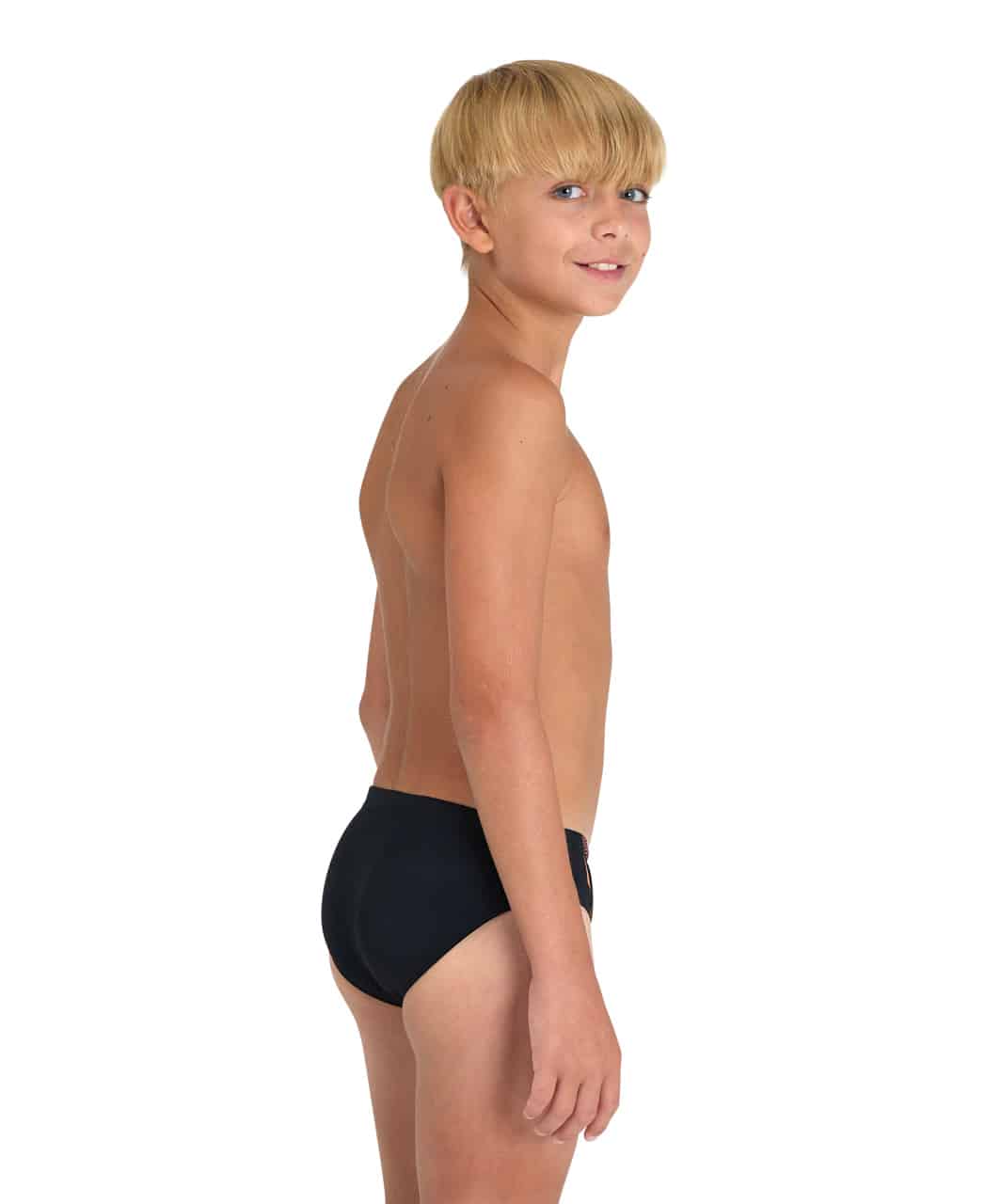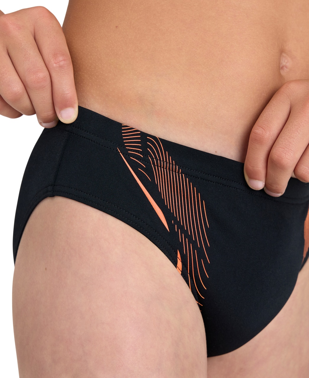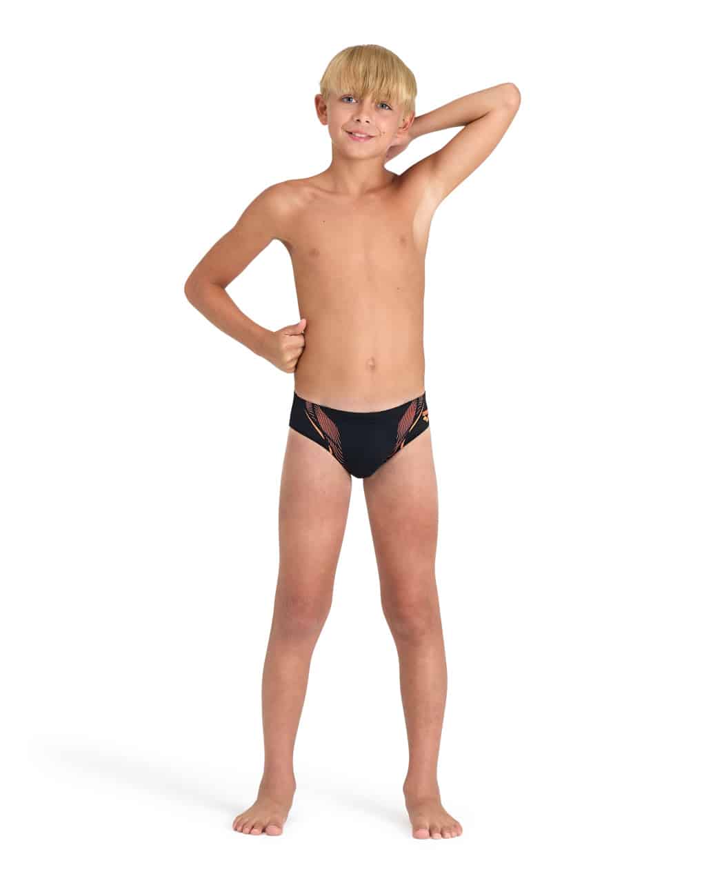 Il COSTUME bambino BRIEFS GRAPHIC ARENA è realizzato in tessuto eco-sostenibile super resistente al cloro.