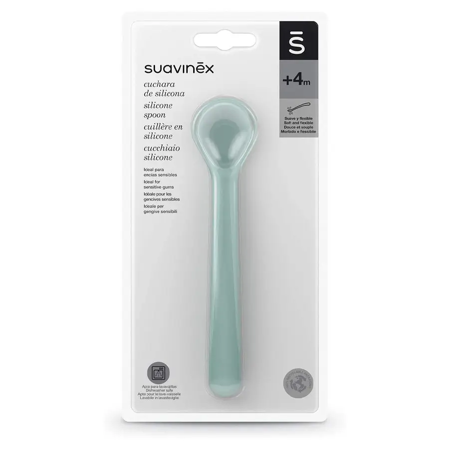 Il cucchiaio in silicone hygge di Suavinex è ideale per le prime pappe. Indicato nella fase in cui le gengive sono particolarmente sensibili a causa del processo di dentizione.