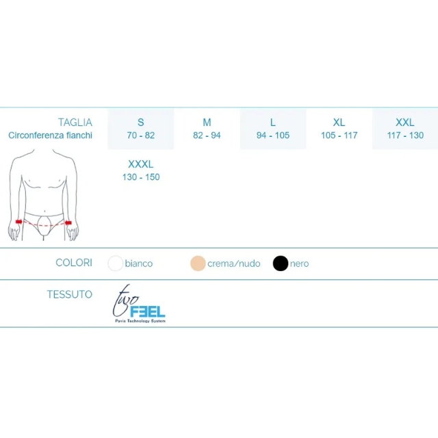 - Poliammide esterno: assicura una perfetta vestibilità e scivola facilmente sotto i vestiti.