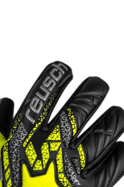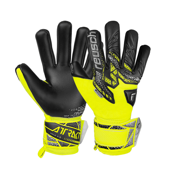 Scatena prestazioni di alto livello con gli Attrakt Gold X NC Junior. Dotati del palmo Reusch Grip Gold X, questi guanti junior offrono una presa eccezionale. Il Negative Cut assicura una vestibilità aderente e precisa, mentre il polsino elastico e il cinturino completo forniscono un supporto sicuro al polso. La zona di punzonatura in lattice offre un supporto eccellente, mentre l’AirVentSystem offre una traspirabilità superiore. Domina il campo con sicurezza!