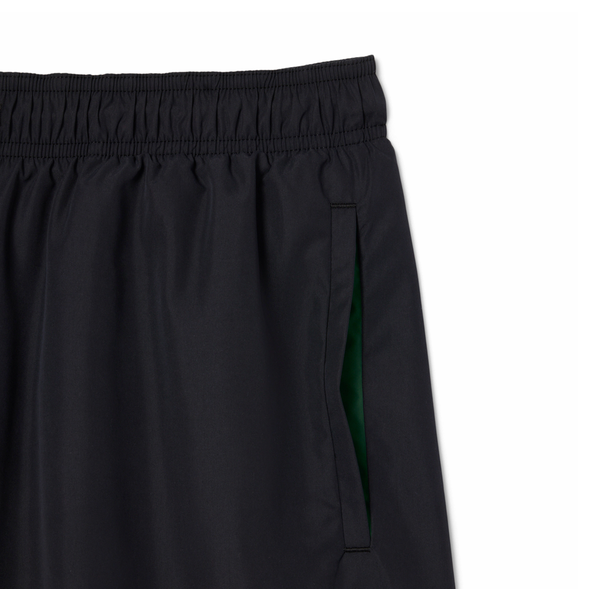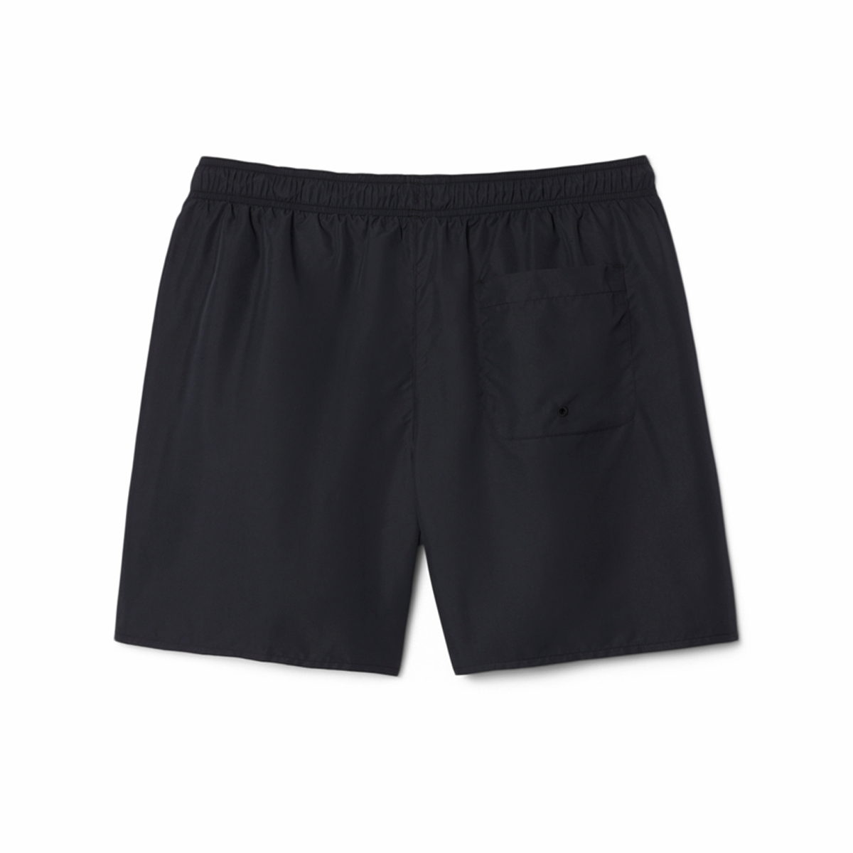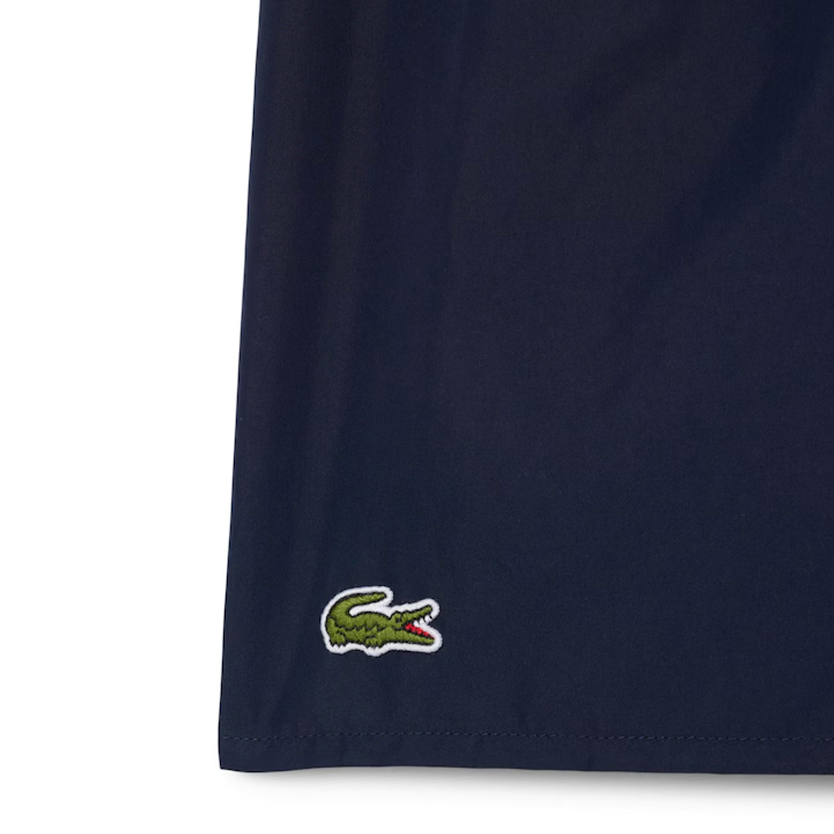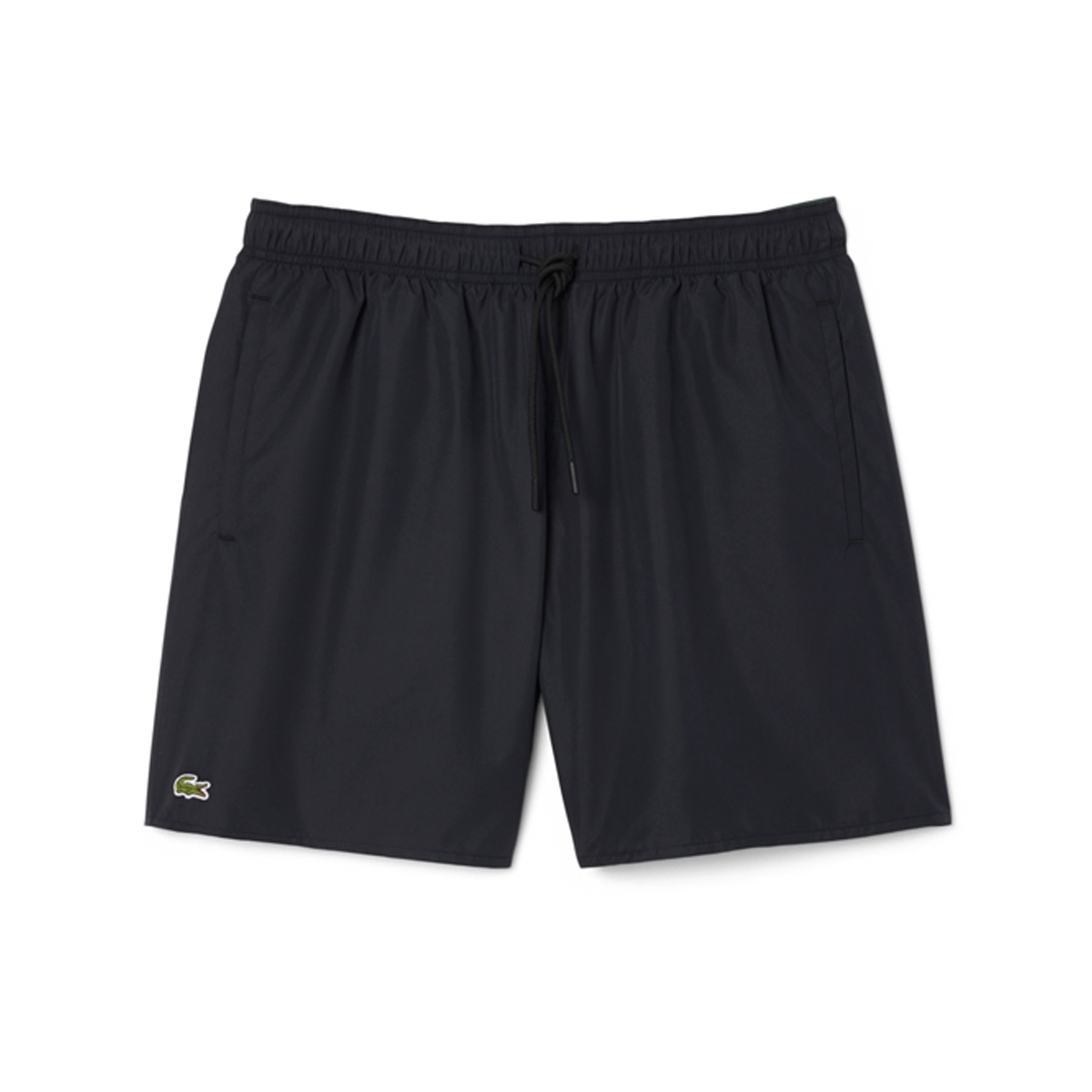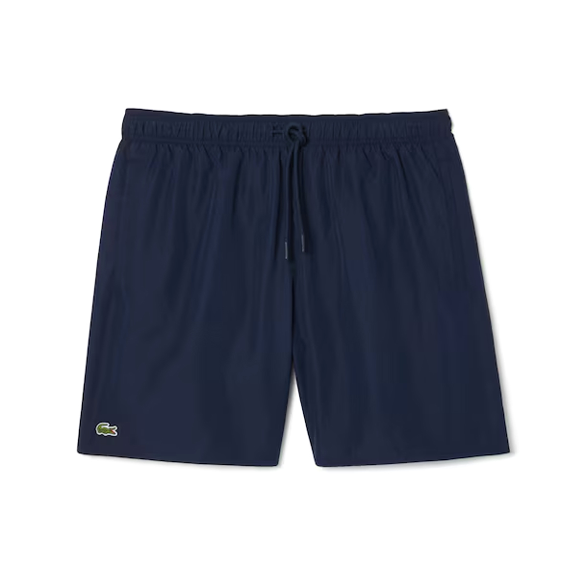 Perfetti per la spiaggia o la piscina, questi pantaloncini da bagno Lacoste uniscono funzionalità e stile essenziale. Realizzati in leggero taffetà di poliestere riciclato, offrono comfort e libertà di movimento grazie alla fodera in mesh e alla vita elasticizzata con cordoncino. Completati dall’iconico coccodrillo ricamato, sono venduti con una pratica sacca da nuoto.