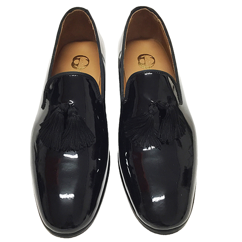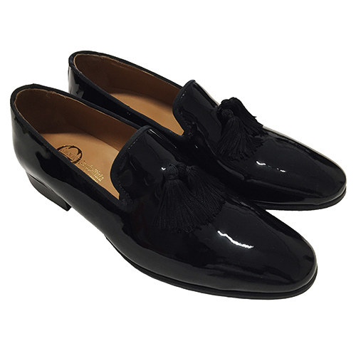 Scarpe uomo mocassino classico per cerimonia in vernice con nappine, realizzate su ordinazione personalizzabili anche con iniziali sul lato con costo aggiuntivo di 15,00 euro, lavorazione artigiana
