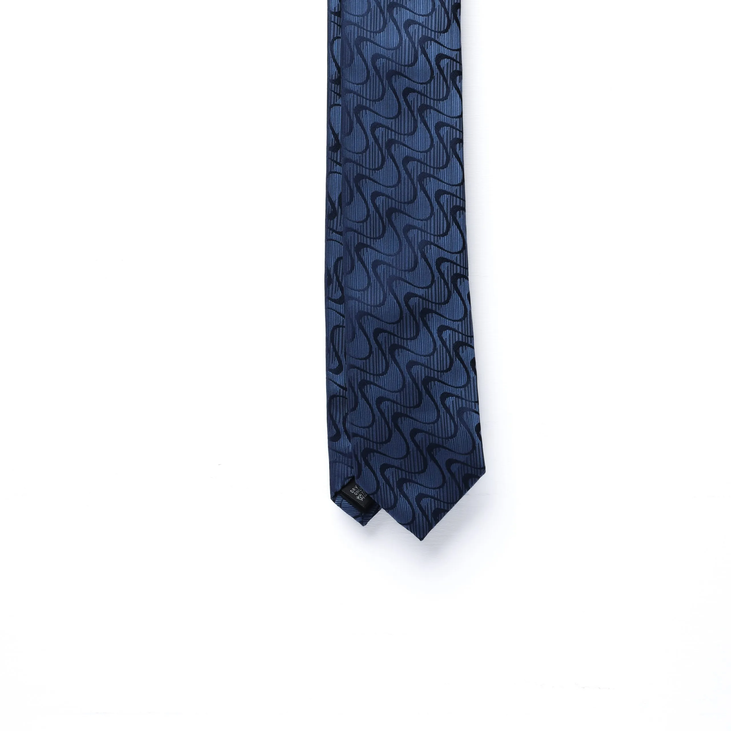 Il motivo ondulato in tonalità di blu conferisce profondità e movimento, mantenendo un’eleganza sobria e decisa.