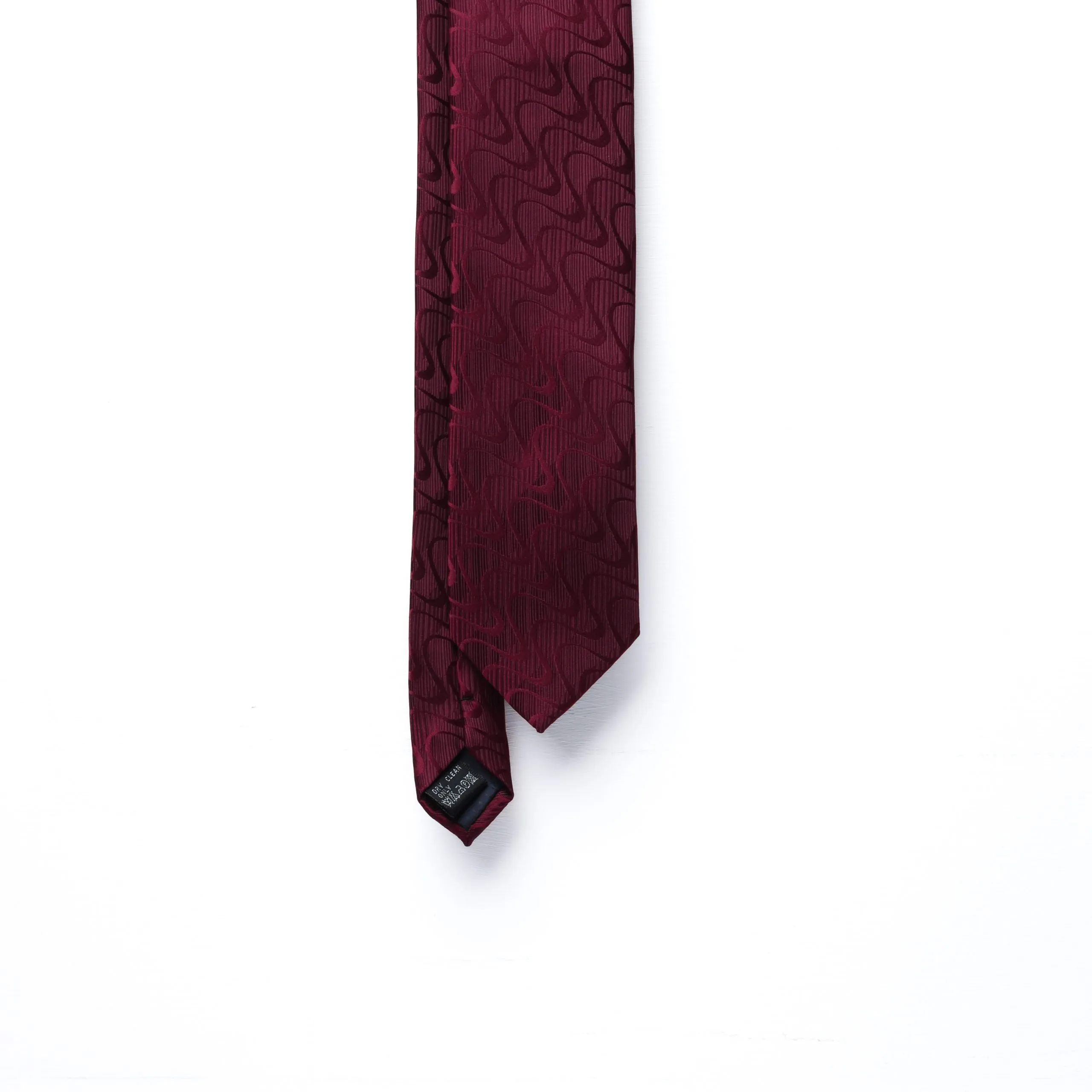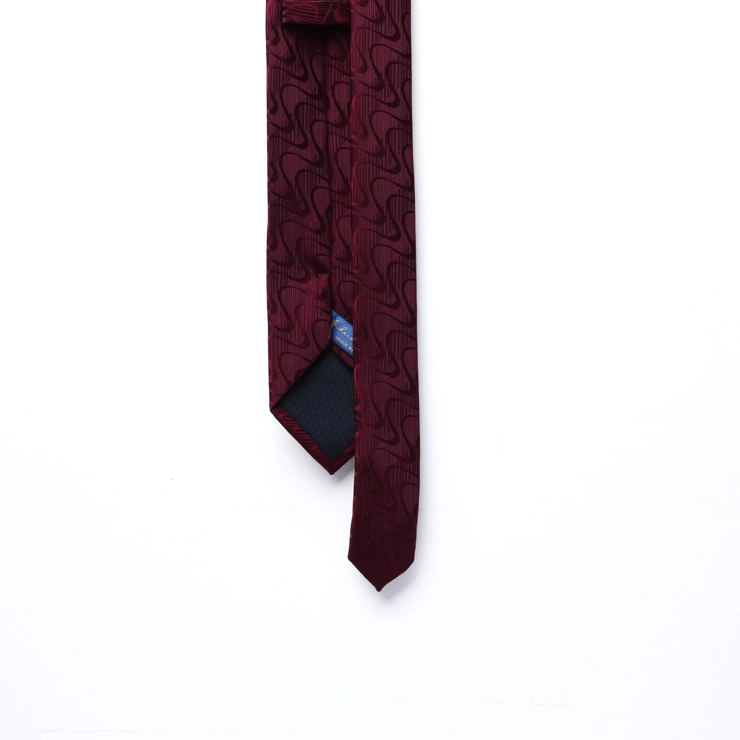 Il motivo ondulato in tonalità di bordeaux conferisce profondità e movimento, mantenendo un’eleganza sobria e decisa.