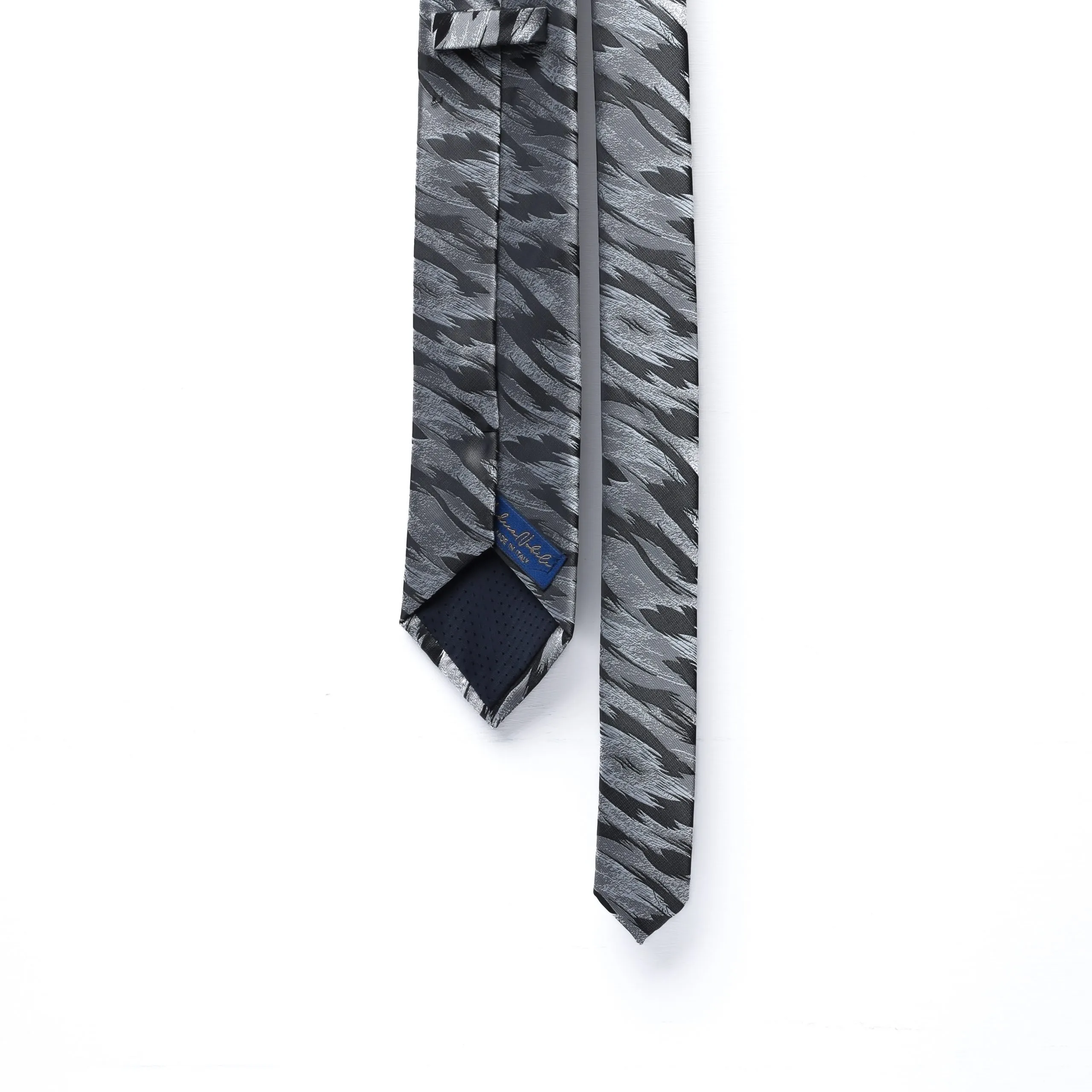 Cravatta artigianale Andrea Nobile realizzata in pura seta italiana con fantasia wild nei toni del bianco e del nero.