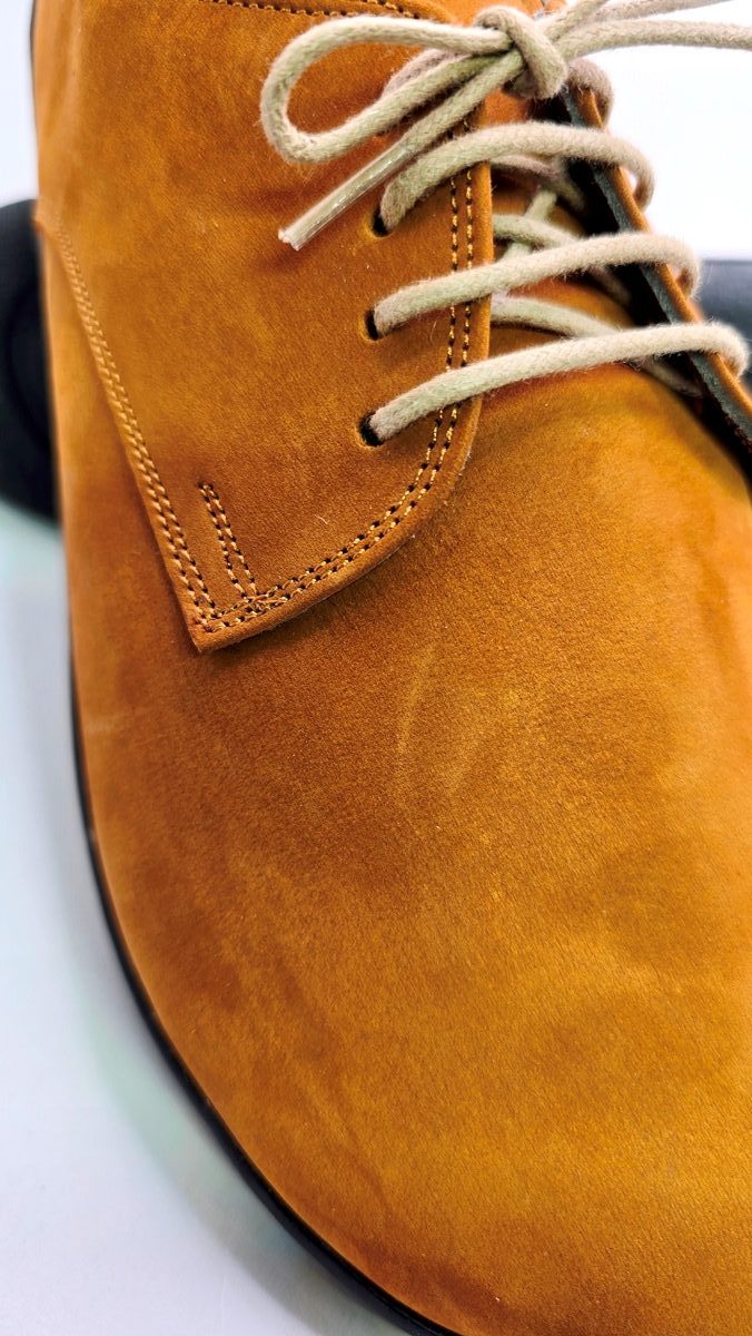- Tomaia in pelle nabuk di vitello conciata al vegetale naturale.