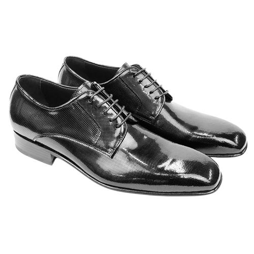 Scarpe per uomo eleganti da cerimonia realizzate artigianalmente in vernice microforata nel nostro laboratorio nelle Marche con materiali 100% italiani di prima scelta accuratamente selezionati.
