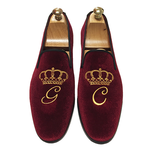 Slippers con ricamo corona e iniziali personalizzabile, in velluto, foderate in pelle, scarpe realizzate su ordinazione in qualsiasi colore della cartella, opzione personalizzabile. Materiali: tomaia in velluto, fodera in pelle, plantare in pelle con poron per un miglior confort suola in cuoio costruito e cucita blake. Disponibile dal 35 al 47 calzata comoda Italiana. Calzature realizzate su ordinazione in laboratorio artigianale con pellami e materiali di prima scelta, tutto made in Italy. Dal momento dell’ordine specificando la taglia e colore, abbiamo bisogno di un massimo di 10 giorni lavorativi per la realizzazione. Su richiesta si può avere la cintura nello stesso pellame con l’aggiunta di 35,00 euro. Lavorazione rigorosamente artigiana! I nostri prodotti sono tutti realizzati a mano. Modello per uomo e donna, su richiesta anche da bambino dal 25 al 34. Ricamo corona Inglese più iniziali.