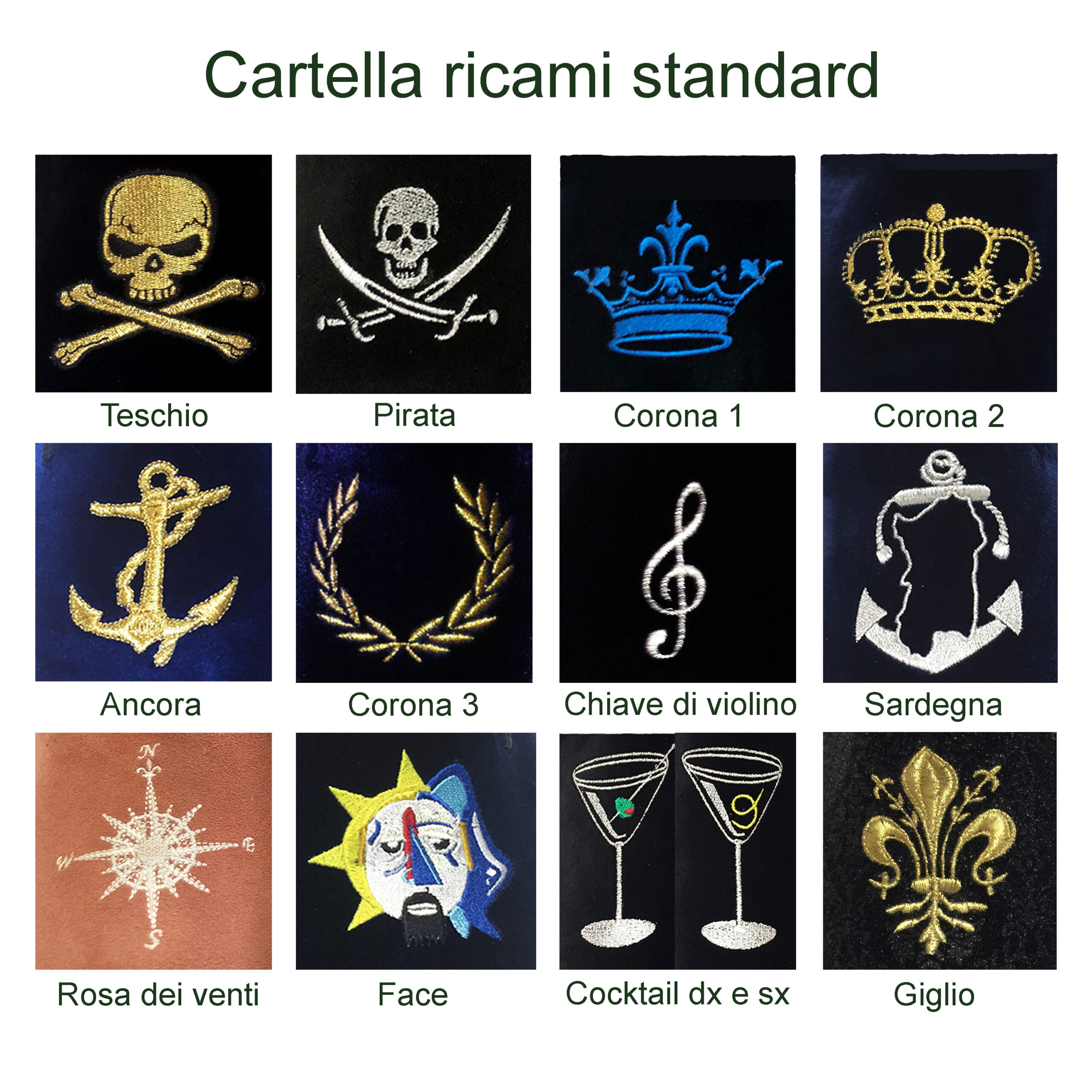 Personalizzazioni possibili: colore tomaia. colore fodera, colore profilo, colore ricamo, colore suola