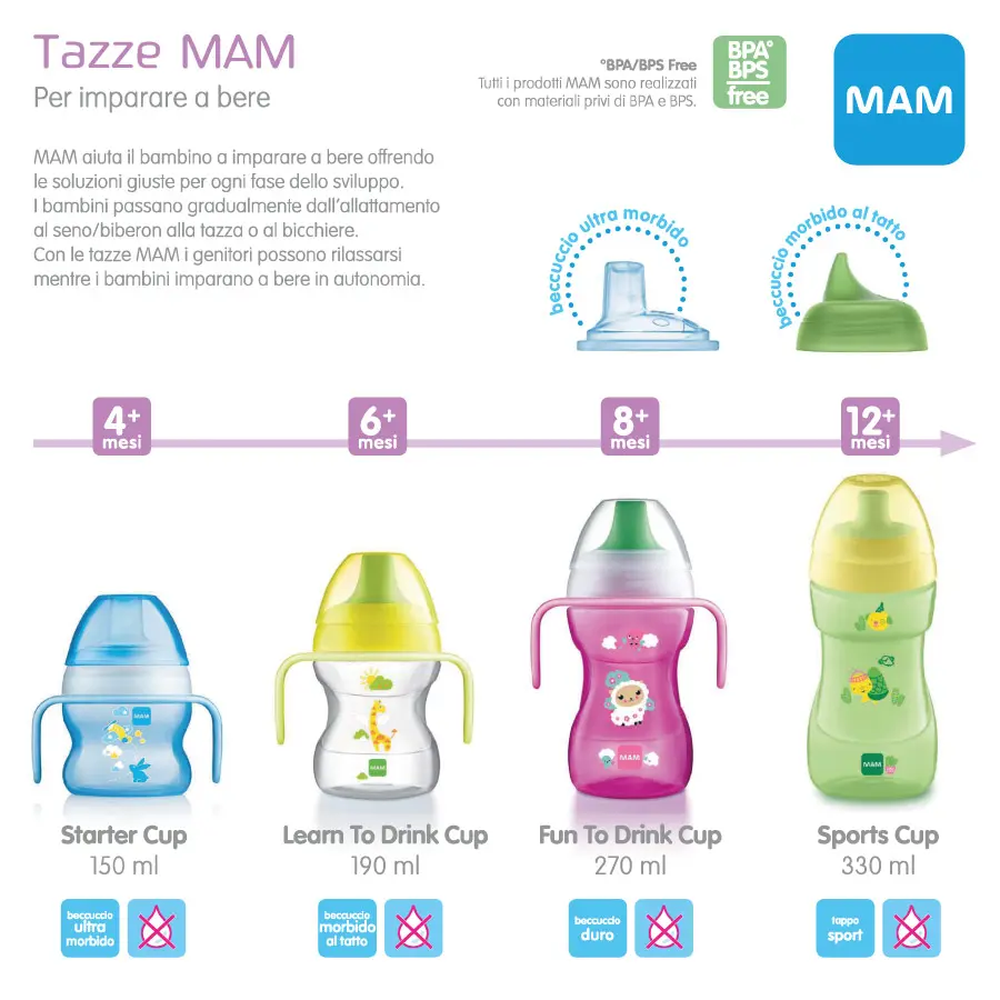 La plastica utilizzata per i prodotti MAM è sempre priva di BPA e sicura per tutti i bambini.
