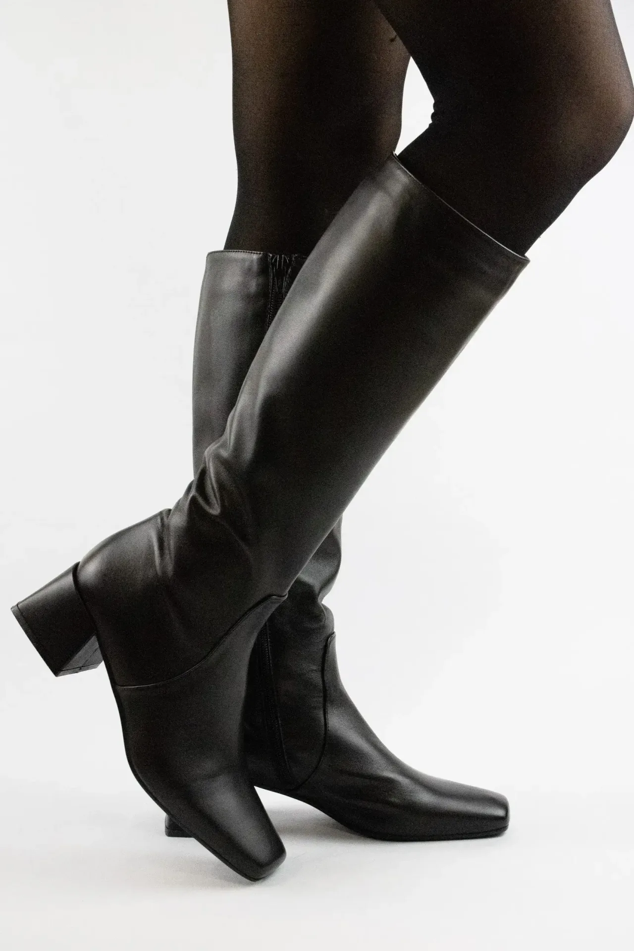 La punta squadrata conferisce a questi stivali un tocco di originalità e modernità, distinguendoli dai modelli tradizionali. Il tacco quadrato alto 5 cm garantisce comfort per tutta la giornata.