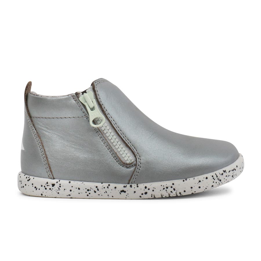 Stivaletti Bobux I Walk Tasman Argento. Le I-Walk hanno un posto speciale nel cuore degli stilisti Bobux. In questa fase della crescita (tra il 15 mesi e i 5 anni) i bambini cominciano a esprimere le loro preferenze sulla scelta delle scarpe e ci si può spingere un po’ più in là con la creatività. C’è molto da tenere in considerazione in questa fase così importante… la corsa, i salti! Ci si può inoltre esprimere maggiormente con i disegni e materiali innovativi. La nostra linea I-Walk riscuote grande successo in giro per il mondo, grazie anche ai nostri modelli sempre alla moda!